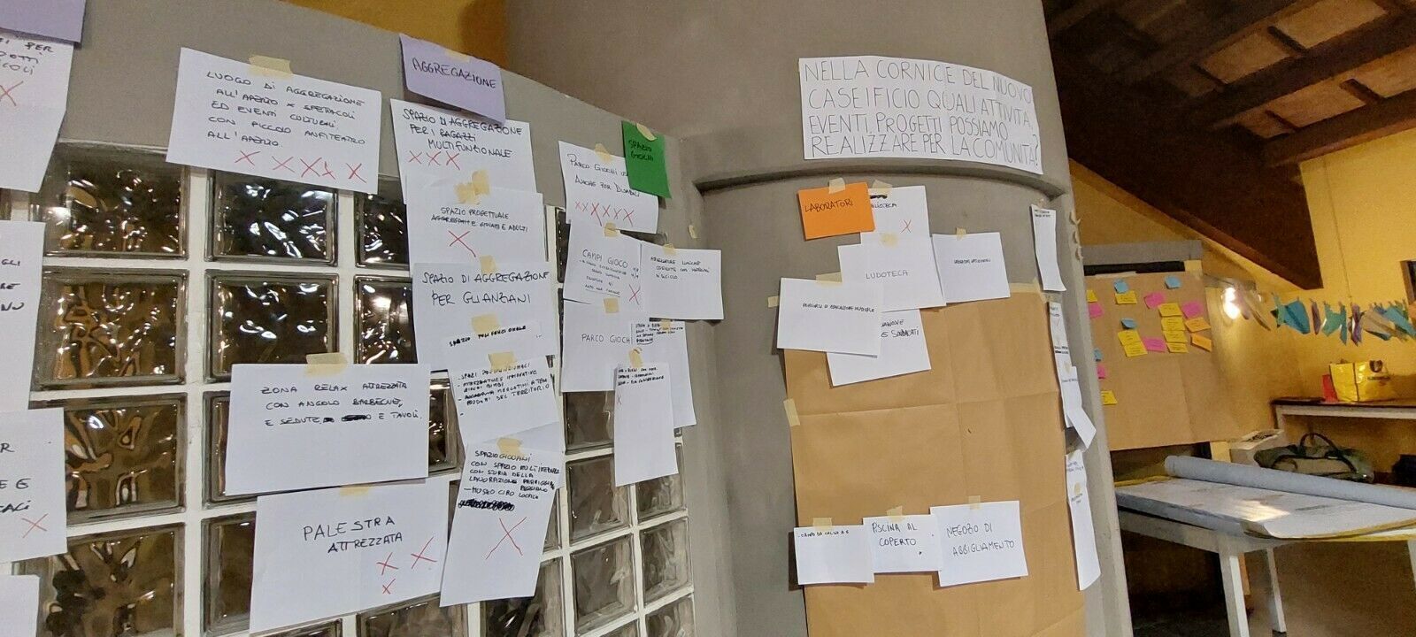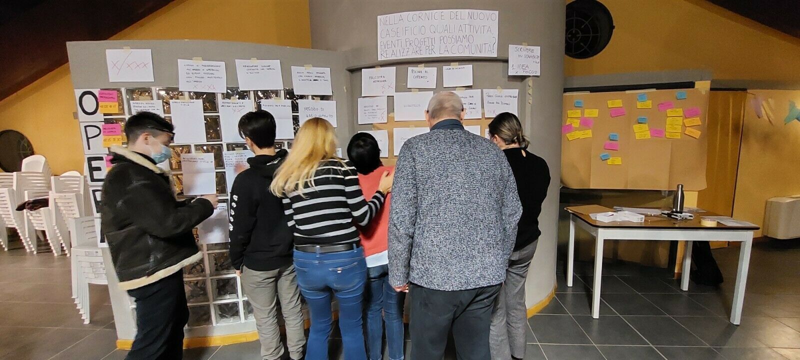Dopo una condivisione della struttura e degli obiettivi del percorso, il gruppo è stato coinvolto in un'attività di ideazione con la tecnica O.P.E.R.A, per favorire l'emersione di proposte condivise per il paese e in particolare per gli spazi comuni del nuovo caseificio.