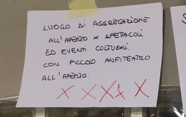 Lo spazio dovrebbe comprendere un piccolo anfiteteatro per manifestazioni teatrali, musicali ecc.